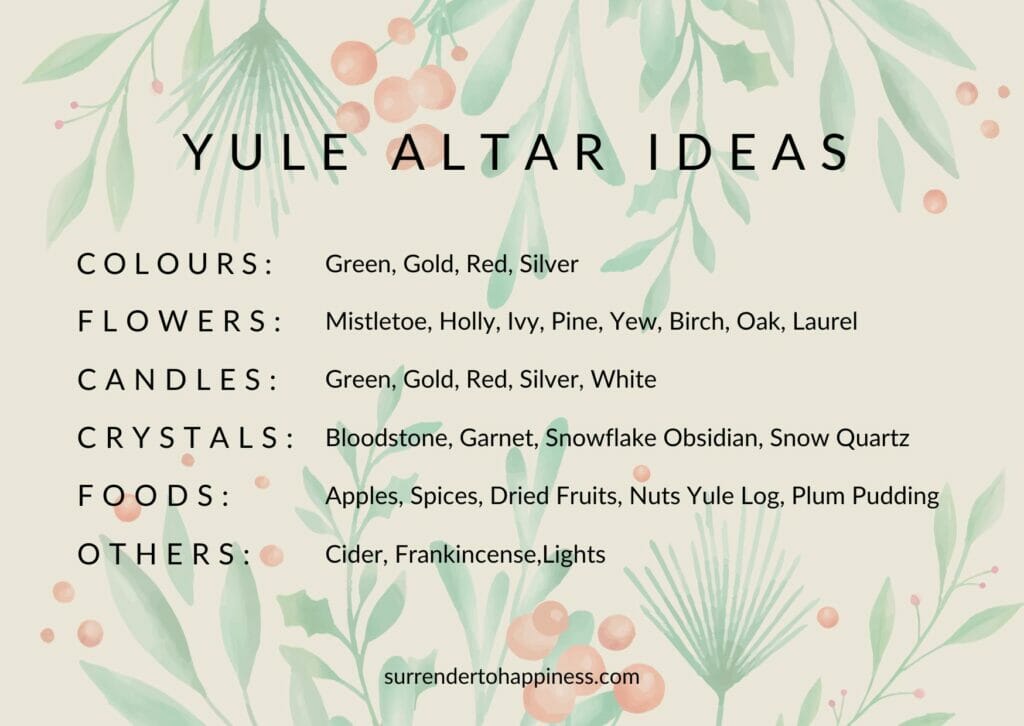 Don’t forget to include candles; after all, this is a celebration of light. Remember to have fun when decorating your altar. It should be personal to you and, with the onset of a new year, should encourage feelings of rebirth and abundance.