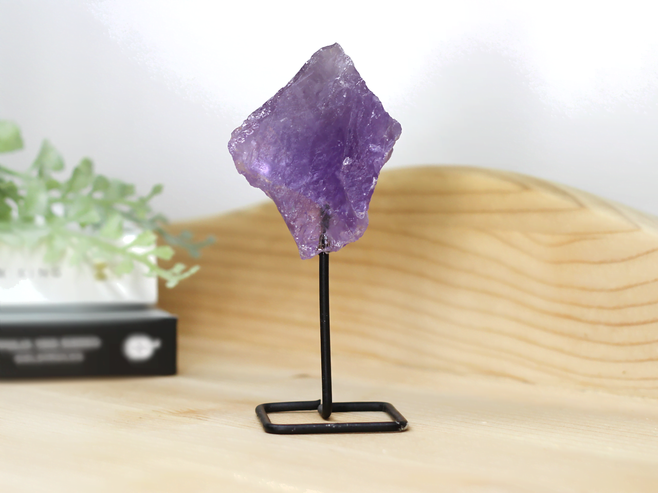 Remember to check out our other products, such as this blue kyanite on a stand. And pleases remember to tag us on Instagram @surrender_to_happiness with your beautiful display piece. We always love to see you enjoying your purchases. For more information on amethyst, look at our blog, ‘all about amethyst,’ or click here.