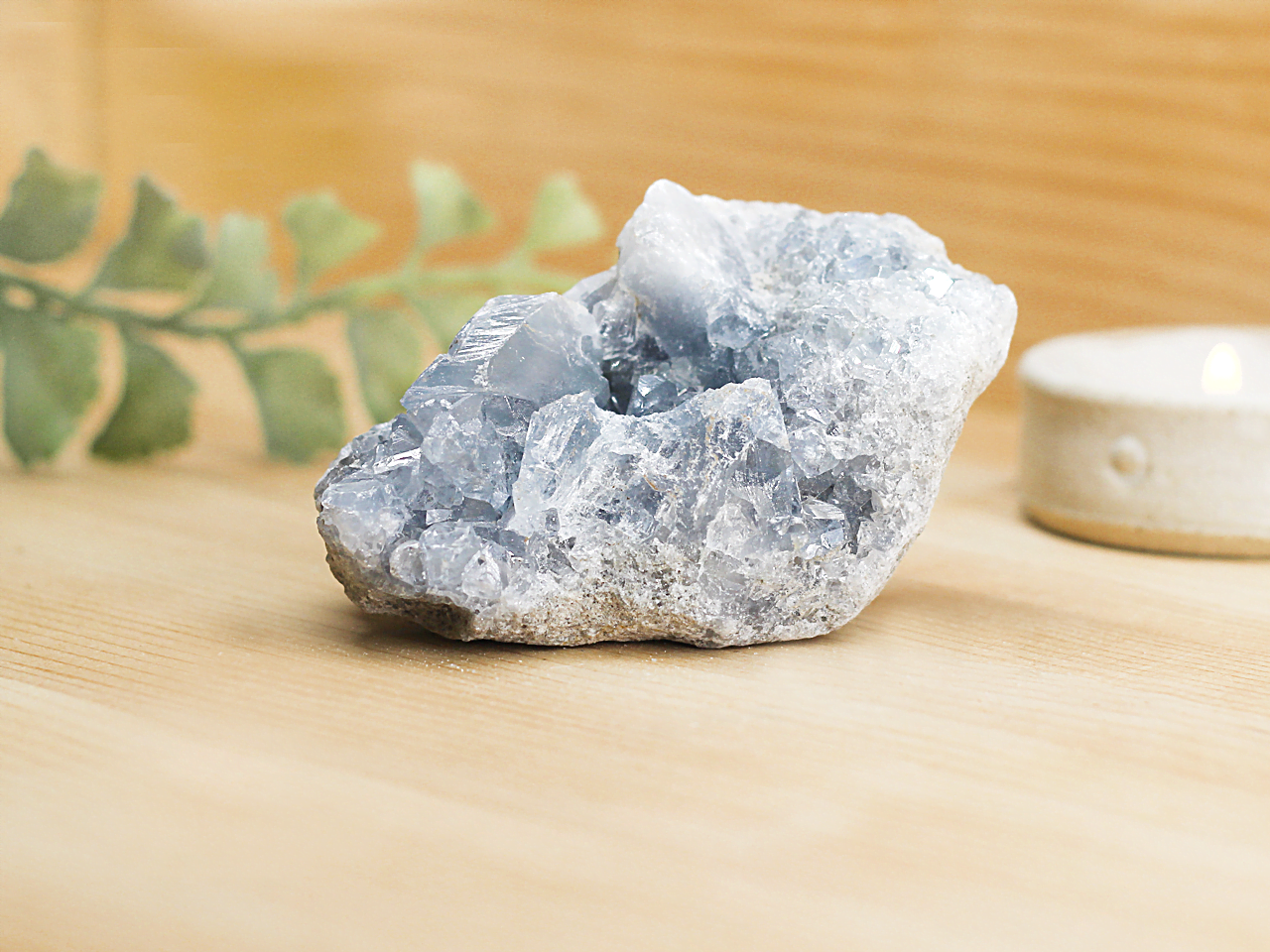 Celestite, also known as celestine, is a mineral composed of strontium sulphate. This beautiful crystal is an excellent addition to any household room, emitting a calming and uplifting energy.