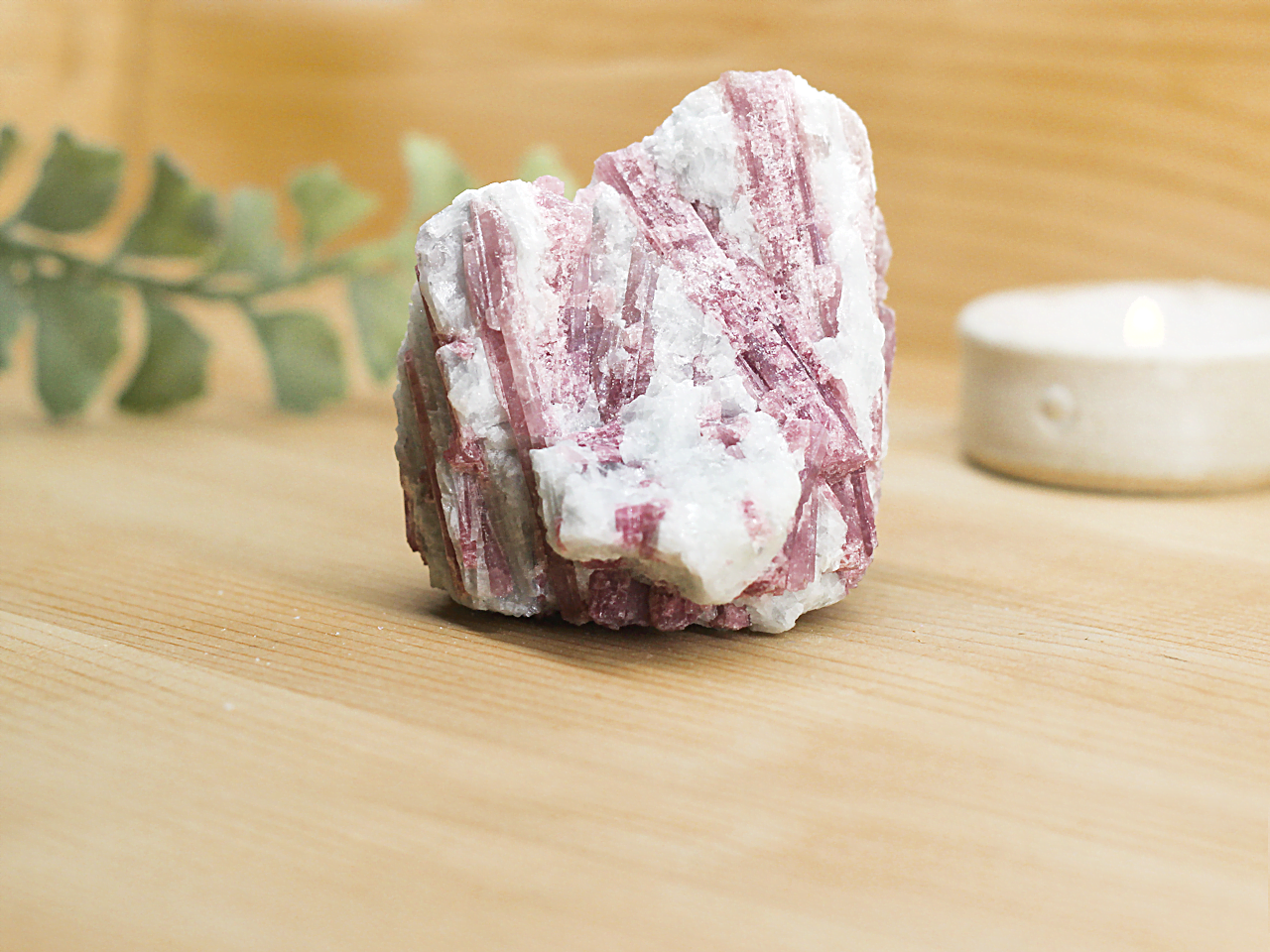 Pink tourmaline in matrix can vary in colour, ranging from pale pinks to deep reds. Pink tourmaline encourages love and compassion. It is a profoundly feminine stone with a nurturing energy.