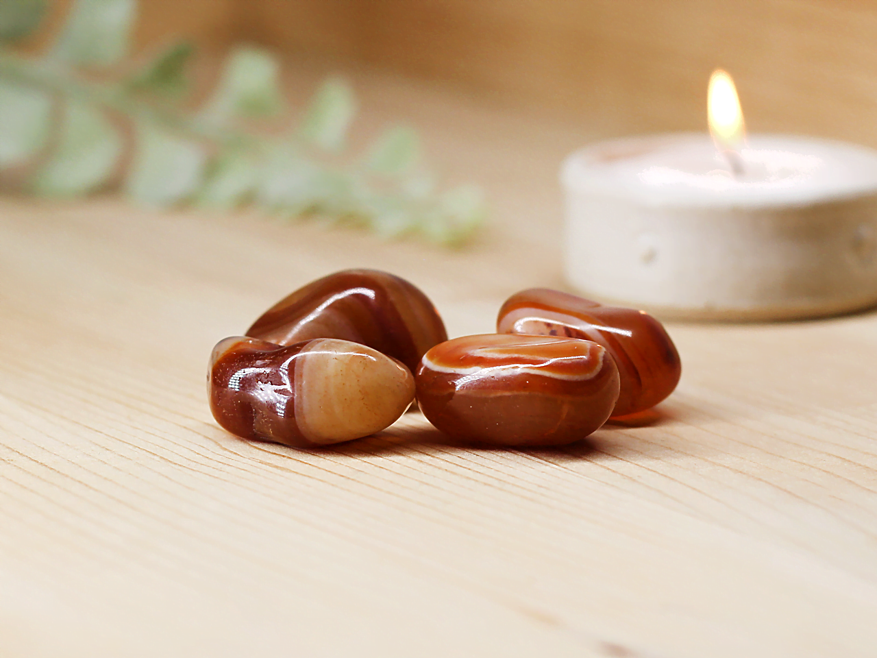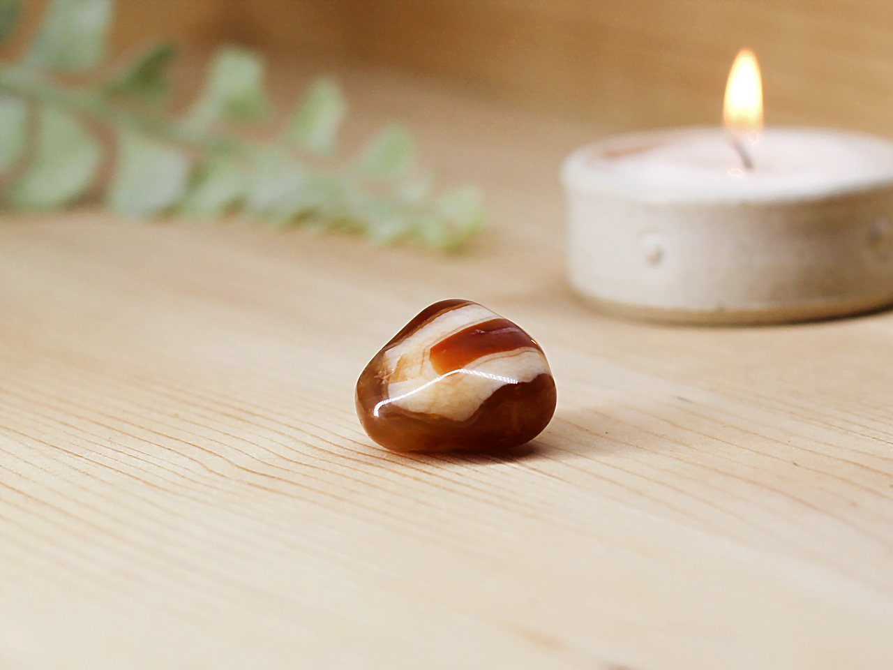Sold separately. Each sardonyx tumblestone will vary slightly in size, shape, colour, and pattern. The approximate size is 2.5cm+.