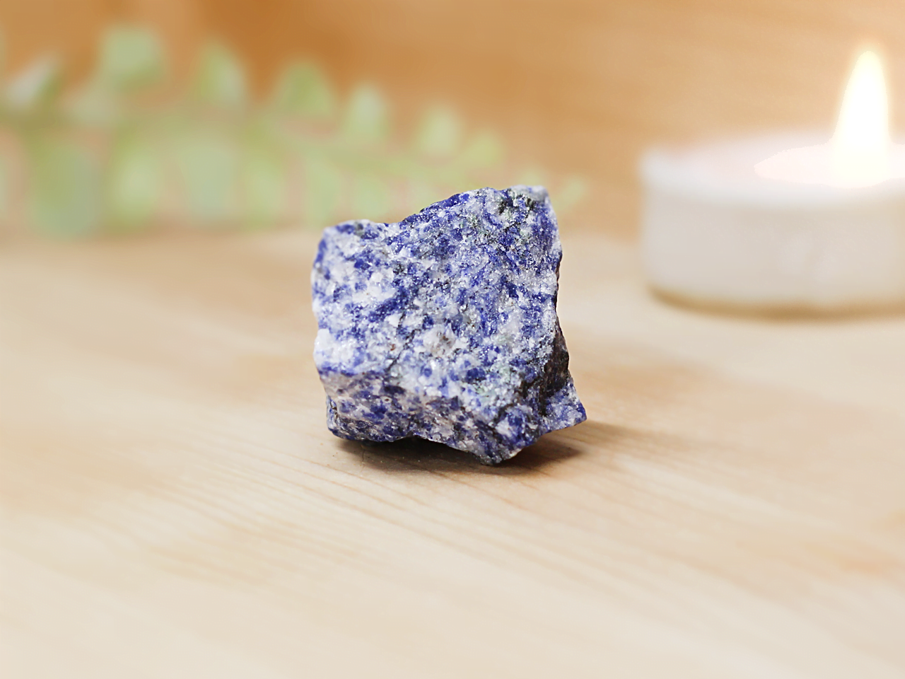 Sold separately. Each sodalitic quartz rough crystal will vary slightly in size, shape, colour, and pattern. The approximate size is 4cm+.